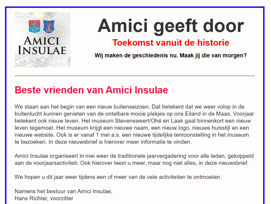 De hele Nieuwsbrief kunt u lezen op de site van Amici Insulae of te klikken op Amici.